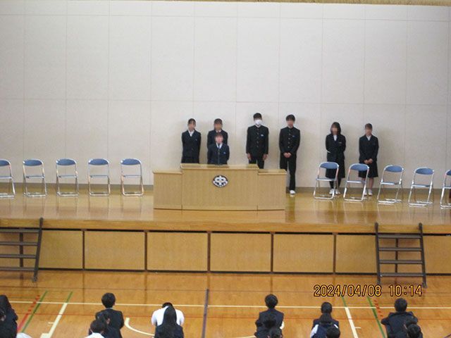 着任式①着任式②着任式③着任式④校歌斉唱校長 式辞学年教師紹介学年教師紹介生徒指導担当からの話生徒集会①生徒集会②生徒集会③生徒集会④生徒集会⑤8時30分より体育館で行いました。着任式本日11名の先生方が着任されました。始業式校歌斉唱校長 式辞学年教師紹介生徒指導担当からの話生徒集会しっかりと話が聞けていました。 更新:2024/04/08 20時40分