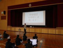 3時間目の学活は、江渡先生から学年アイスブレイク企画よりバースディチェーンと生徒指導担当の西村先生から小学校と中学校の違いや自治についての説明による講話がありました。