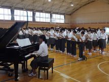 10月18日金曜日6限目の総合は、第2回目の文化発表会の全校練習があり、生徒会役員生徒の全体説明の後、各パートごと(ソプラノ、テナー、アルト、バス)に分かれてのパート練習を行い、その後、全体であわせての合唱練習が行われました。最後に3年生担当教員より講評があり、文化発表会当日は、感動する合唱を行いましょうという講評をいただきました。
