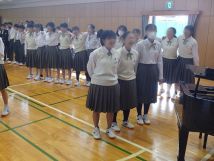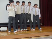 10月25日金曜日、文化発表会本番前の全体練習では、全校合唱による合唱隊形になる入退場の練習と並び方の確認、そして、実際での全校合唱練習と続き、その後、パートごと(ソプラノ、アルト、テナー、バス)に分かれて、円型に並んでの合唱練習をしました。円型に並んだ合唱練習では、みんな肩を組んだりして、仲良く取り組めたのが、非常に良かったと思いました。