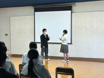 本日5・6校時に、性教育講演会『対等な関係をつくろう~デートDVを防止するために~』が行われました。講演の途中では、生徒が演じる寸劇があり、自分たちの今やこれからの姿を考える講演になりました。