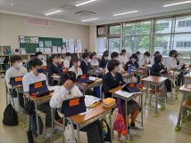 1組が「電車の中で」、2組が「戦場の県知事島田叡さん」、3組が「あるレジ打ちの女性」という教材を学習しました。