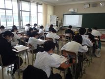 今日、5月22日水曜日の1限目道徳は、1-1が「留さんのボギー」、1-2が「疾走、自転車ライダー」のタイトルで、道徳の授業を行い、1-1,1-2 2クラスとも、生徒全員、発表や発言等、積極的に授業に取り組んでいました。