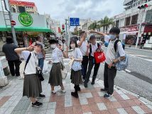 ホテルを出発し、道の駅かでなに寄りました。そして、最後は国際通りで昼食とお土産の購入です。