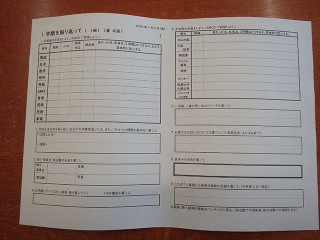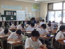 7月5日金曜日6限目の総合は、一学期についての振り返りについてで、「一学期を振り返って」のプリントを使って、各自、学習面や生活面、学校生活全体及び一学期、一番の思い出エピソード等を書いていきました。その後、各クラスで七夕のたんざくを作り、七夕の日に、みんなの願いごとがかなうようにたんざくを作成していきました。