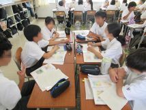 7月9日火曜日5限の道徳は、1-1が「公平と不公平」1-2が「バスと赤ちゃん」の題目で授業が行われ、1-1では、班ごとに分かれての班学習で内容の理解を深めていきました。1-2では、実際のバスの中で、赤ちゃんが泣きじゃくった時、周りの人は、どのように反応し、対応していくかということを学びました。