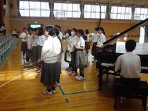 今日、10月17日木曜日5限目の総合は、第二回目の文化発表会学年練習で、練習内容として、合唱隊形の入退場の練習や合唱隊形による合唱練習、ソプラノ、アルト、テナーのパートごとの合唱があり、その後再度の合唱練習後、音楽科と学年担当による練習の講評がありました。明日は、第二回目の全校による合唱練習です。文化発表会まで残り一週間弱となりましたが、最後まで頑張って取り組んでいきましょう。
