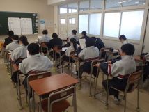 1月7日火曜日2限目の学活は、冬休み明けの3学期始業式終了後に行われ、担任による3学期に向けての抱負等の話の後、各クラスとも冬休みの課題の提出や学級役員における専門委員会の委員決め等が行われました。