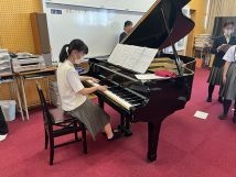 平和学習で歌う「聞こえる」とレクで歌う「三線の花」の練習をしました。感謝を伝える合唱、みんなで楽しむ歌を完成させましょう。