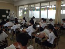 7月18日水曜日1限目の学活は、各クラスで、事前に配布された「夏の生活記録」を元に夏休みの過ごし方についての説明や夏休みの計画および日程と生活設計についての書き方の説明があり、生徒一人一人真剣に耳を傾けて取り組んでいました。