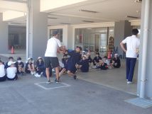 9月18日水曜日1限目の総合は、体育大会の学年練習で、1年生においては、綱引きについての実践練習が行われ、暑い中、みんな一生懸命に頑張っていました。