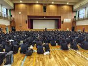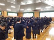 体育館での合唱練習開始です。昨年度までは座席で歌っていましたが、今年は300名超の3年生がステージで歌おうと計画中。卒業式まであと10日程。どんな感動を見せてくれるか楽しみです。