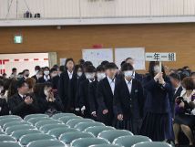 昨日は、雨模様でしたが、桜の花もそんなに散らず、220名の入学生を迎えました。今日からの中学校生活を在校生、地域の方々、保護者、学校職員一同でお祝いしました。