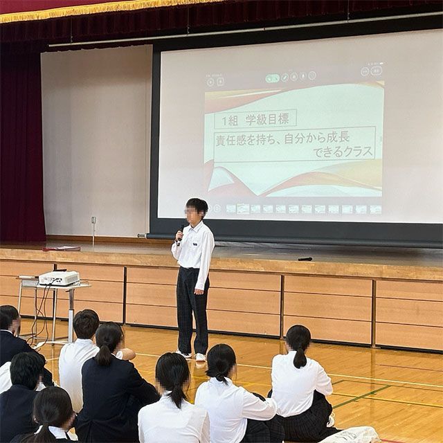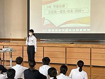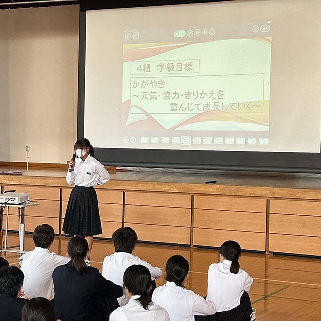 学年集会で各クラスの学級目標を発表しました。