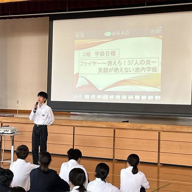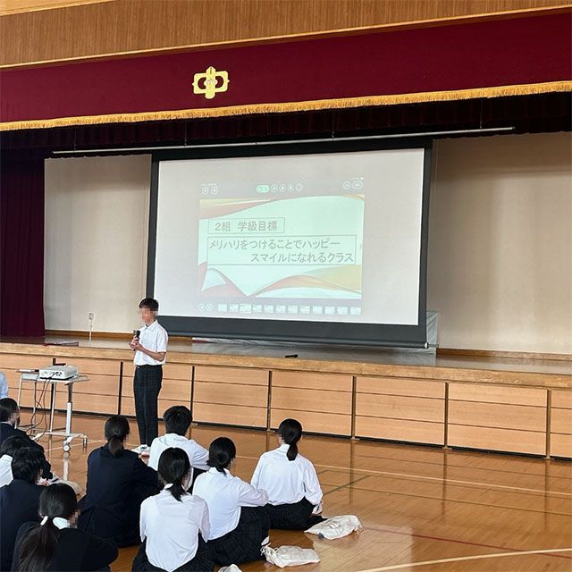 2年生2024年4月25日(木)学年集会(学級目標・トライやるウィークに向けて)