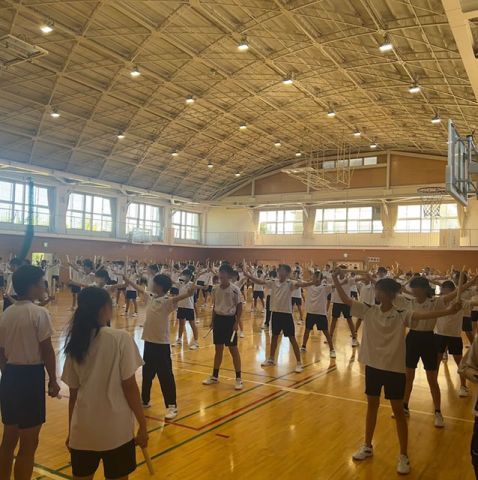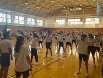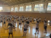体育館でマスゲームの通しや振り付けの細かい確認をしました。