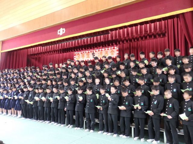 歌の発表や吹奏楽部の演奏、教職員の歌、そして、生徒会が作成してくださった、