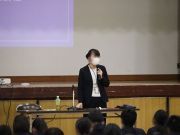 本日は外部の講師の方をお招きし、情報モラル講演会が行われました。普段の生活に根付いているSNSの危険性について具体的な事例を交えてお話しいただきました。