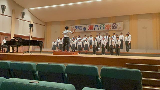 明石市民会館にて行われました、明石市連合音楽会に3年4組が魚住東中学校の代表として参加してきました。立派なホールで歌うことに少し緊張していた生徒たちでしたが、しっかりと代表として恥じない合唱を歌うことができました。また、他の中学校の代表クラスの合唱を聞き、そのレベルの高さに良い刺激を受けることができました。