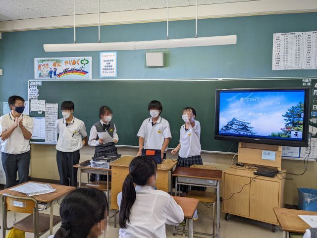 修学旅行の思い出をまとめて、各班で発表しました。修学旅行で学んだこと、楽しかったことをタブレットでまとめました。改めて修学旅行が充実した二泊三日だったことを確認していました。