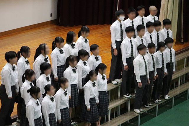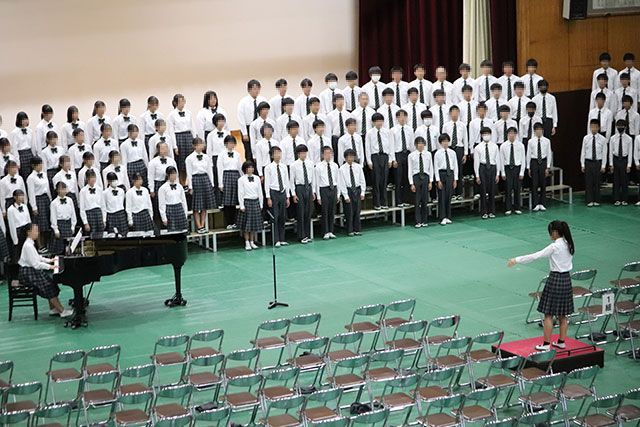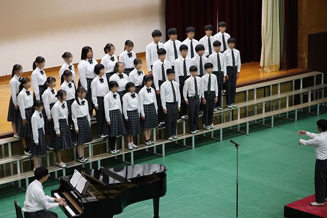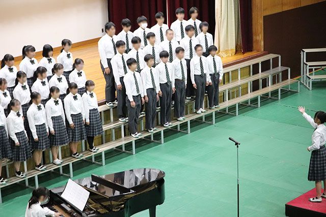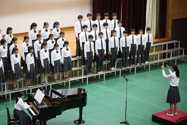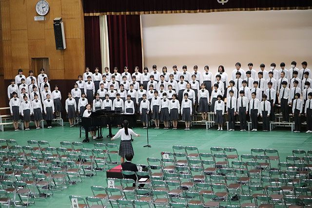 学年文化祭では各クラスの取り組みで作り上げてきた合唱が披露され、美しい歌声を保護者の皆さんに届けることができました。全校文化祭では代表に選ばれた3年4組の合唱と学年合唱を1・2年生に披露しました。3年生として、誇りと自信を持ったハーモニーを響かせることができました。